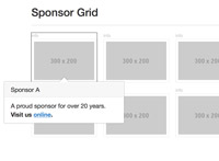 The sponsor grid featues an expandable window that can display information and links relating to the image. It is fully responsive, of course.